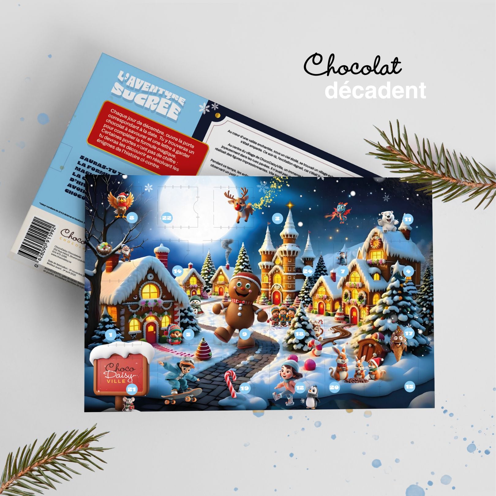 Choisissez parmi nos nombreux visuels de calendriers ainsi que le type de chocolats : 24 chocolats avec motifs de Noël OU 24 bouchées de chocolats fins.